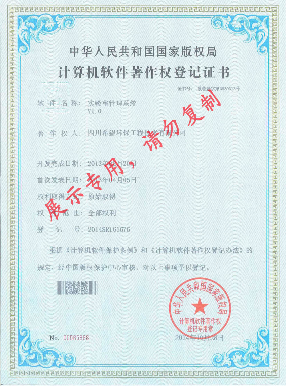 计算机软件著作权登记证书